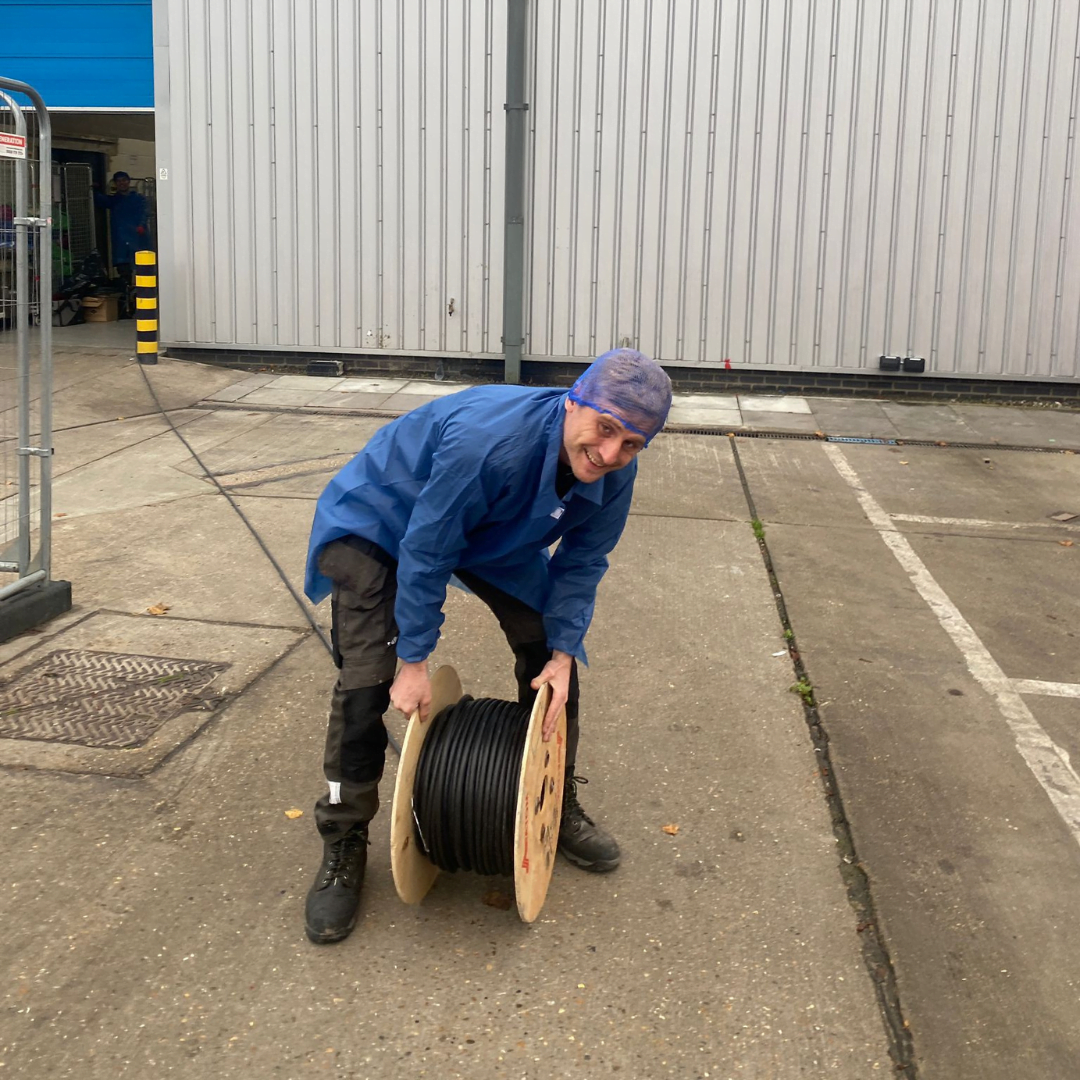 electrican with roll of wiring